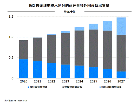 ABI Research預(yù)測,到2027年,低功耗音源和匯流設(shè)備的年出貨量將達(dá)到30億。