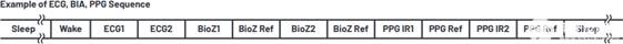 圖 3b 顯示了一個操作序列的示例。上電后,進行復(fù)位操作,芯片進入休眠模式。喚醒芯片后,您可以依次對兩個ECG信號(例如,LEAD I和LEAD II)進行采樣,然后進行光學(xué)測量以執(zhí)行SpO2讀數(shù)和阻抗測量以測量皮膚電導(dǎo)率(EDA/壓力)。下一節(jié)將解釋實現(xiàn)這些測量中的每一個的過程。