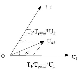 圖4 參考電壓在第一扇區(qū)矢量合成方法