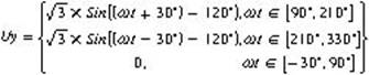 其中Ux、Uy、Uz為電機端線電壓,Ua、Ub、Uc為電機相電壓,可見相電壓相位差為120度。Ux、Uy、Uz與Ua、Ub、Uc的關(guān)系如下: