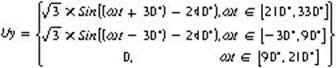 可見采用開關(guān)損耗最小正弦PWM時,Ux,Uy,Uz相位差120度,且為分段函數(shù)形式,并非正弦電壓,而電機相電壓Ua、Ub、Uc仍然為正弦電壓。且在120度區(qū)內(nèi)端線電壓為0,即對應(yīng)的開關(guān)管常開或常關(guān)。因此與三相正弦PWM相比,開關(guān)損耗減少1/3。