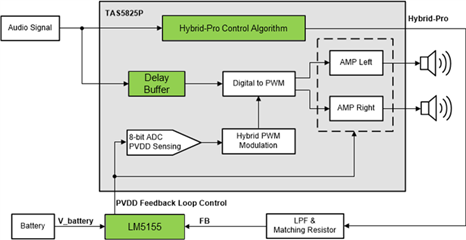 圖6. TAS5825P實(shí)現(xiàn)動(dòng)態(tài)調(diào)壓音頻功放的系統(tǒng)框圖