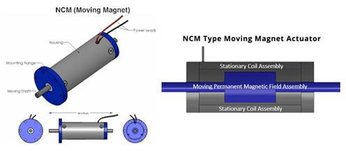 顧名思義,VCA 是為驅(qū)動揚聲器的紙盆而開發(fā)的,它也提供了相當多的大眾市場設計和制造經(jīng)驗。VCA 的設計和構造非常簡單,具有永磁體和黑色鋼的現(xiàn)場組件以及線圈組件。流過線圈組的電流與永磁場相互作用,產(chǎn)生垂直于電流方向的力;這個力的方向可以簡單地通過反轉(zhuǎn)電流來反轉(zhuǎn)。