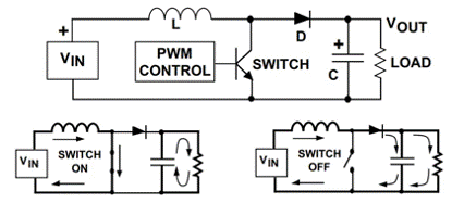在工作中,輸入電壓被連接到電感器,然后輸入和輸出電壓之間的差值被強制穿過電感器,使電流增加。在此過程中,電流同時流入負載和輸出電容,對電容進行充電。當開關閉合時,電容器向負載放電,使總電流(電感和電容器的電流之和)增加。
