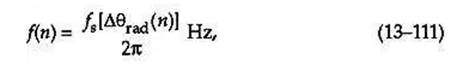 這是傳統(tǒng)的離散信號調(diào)頻解調(diào)方法,效果很好。解調(diào)器的瞬時輸出頻率為下面的 Eq13-111: