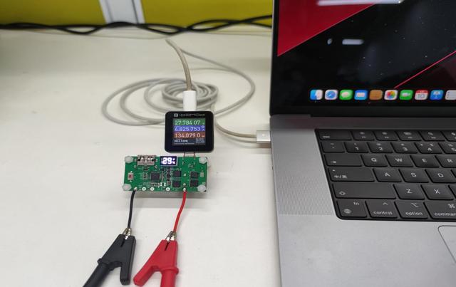 M12269 DEMO板以140W功率給蘋果筆記本充電。