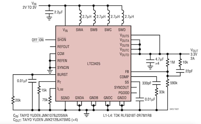 圖 1. LTC3425 示意圖。圖片由Analog Devices提供