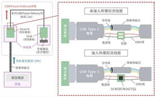 使用共模扼流線圈的噪聲對策方法:接入共模扼流線圈