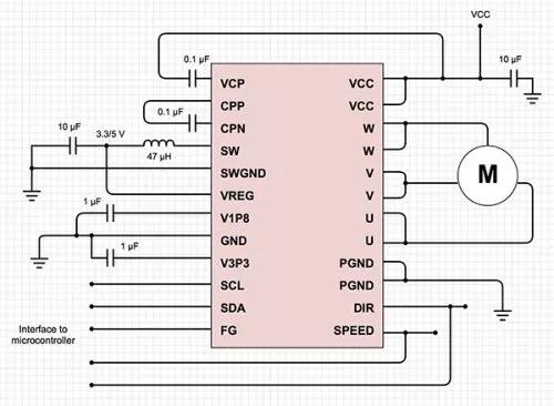 它利用 Kinetis KE04 ARM® Cortex®-M0 MCU 運行正弦算法。由于控制電路設(shè)計基于一種普通的 BLDC 驅(qū)動器芯片,因此進一步減輕了實現(xiàn)難度。這些設(shè)備通常將 PWM 控制和電力電子器件集成到一個芯片,并提供外部 MCU 的接口。其他設(shè)備集成 MCU,僅需一些額外的無源元器件就可以形成完整電路。