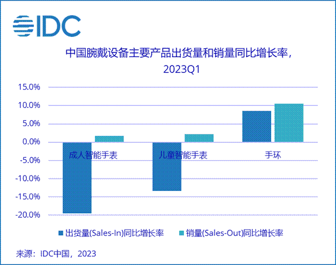 IDC最新發(fā)布的《中國可穿戴設(shè)備市場季度跟蹤報告》顯示,2023年第一季度中國可穿戴設(shè)備市場出貨量(Sales-In)為2,471萬臺,同比下降4.1%。新的一年盡管疫情政策放開,戶外活動和出行基本恢復(fù),但可穿戴市場就渠道端出貨而言仍然低迷。這與廠商旗艦新發(fā)售節(jié)奏、渠道庫存優(yōu)化以及消費復(fù)蘇優(yōu)先排序等因素都息息相關(guān)。