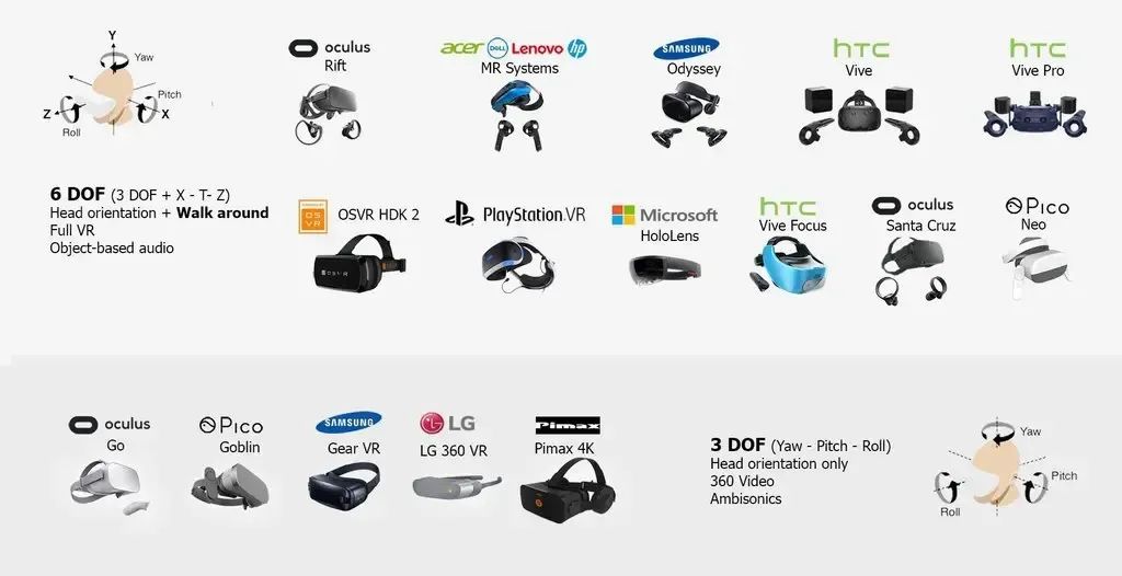 典型的3自由度與6自由度XR產品(來源:Raddit)