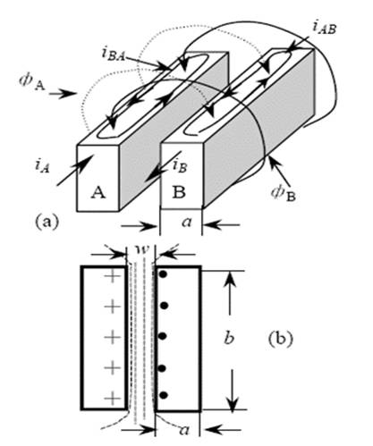 當(dāng)回流導(dǎo)體靠近時(shí),兩根導(dǎo)線的場(chǎng)向量將相加。在兩導(dǎo)體相鄰之間,磁場(chǎng)方向相同而加強(qiáng);兩導(dǎo)線之外側(cè),磁場(chǎng)相反而抵銷(xiāo),磁場(chǎng)很弱,或?yàn)榱。在?dǎo)體內(nèi)部,由兩導(dǎo)體外側(cè)向內(nèi)逐漸加強(qiáng),到達(dá)導(dǎo)體的內(nèi)表面時(shí)磁場(chǎng)最強(qiáng)。