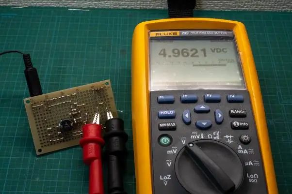 當(dāng)將12V電壓施加到完成的電路時(shí),輸出了5V電壓。由于輸出電壓是通過反饋來維持穩(wěn)定的,因此即使外部電壓波動(dòng),也能始終輸出5V。這個(gè)開關(guān)穩(wěn)壓器IC可輸出高達(dá)(電源電壓 x 0.7V)的電壓,因此理論上即使電壓降至7.2V也能工作。