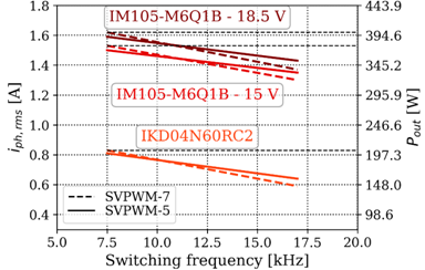 圖9:不同開(kāi)關(guān)頻率和調(diào)制方案下的最大允許相電流