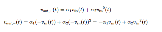 假設(shè)我們的非線性電路是無記憶的(即任何時(shí)刻的輸出僅取決于同時(shí)的輸入)。我們可以使用以下等式來近似非線性輸入輸出特性: