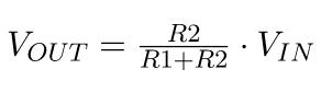 分壓電路是什么樣的呢?如下圖所示,當(dāng)你像這樣連接兩個(gè)電阻時(shí),我們通過(guò)計(jì)算就能得出兩邊的輸出電壓: