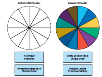 單圈絕對(duì)值編碼器在通電后會(huì)返回機(jī)械或電氣360°范圍內(nèi)的絕對(duì)位置信號(hào)。電機(jī)軸的位置可以立即讀取。多圈絕對(duì)值編碼器不僅具有絕對(duì)位置功能,而且能提供360°圈數(shù)計(jì)數(shù)。相比之下,增量編碼器提供相對(duì)于旋轉(zhuǎn)起點(diǎn)的位置。增量編碼器提供一個(gè)索引脈沖來(lái)指示0°,并提供一個(gè)單脈沖來(lái)計(jì)數(shù)圈數(shù),或提供一個(gè)雙脈沖來(lái)提供方向信息。