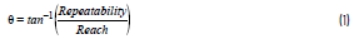 關(guān)節(jié)編碼器所需的角度可重復(fù)性(θ)可從三角函數(shù)得出:機(jī)器人可重復(fù)性除以作用范圍的反正切。
