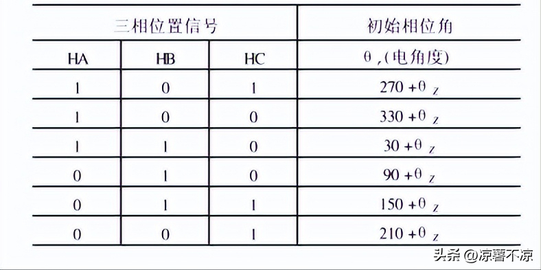 當(dāng)霍爾傳感器輸出的三相位置信號(hào),根據(jù)以上原則確定的三相位置信號(hào)與電壓空間矢量的初始相位角。