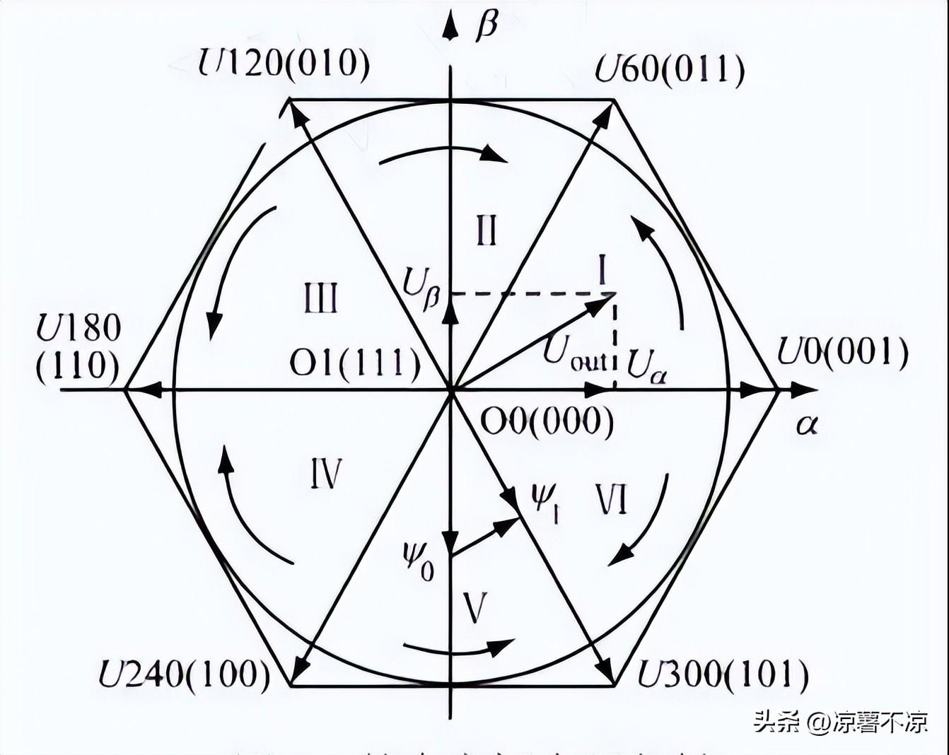 如果要使輸出相電壓更接近正弦波?梢园凑誗VPWM的控制方法把每個(gè)60度區(qū)間進(jìn)行N等分。