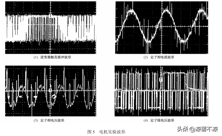 5kW;Un=220V;In=3。55A;fn=50Hz;n=1400r/min。電機(jī)穩(wěn)態(tài)運(yùn)行時(shí),逆變器的驅(qū)動(dòng)波形定子電流、電壓的波形,實(shí)驗(yàn)結(jié)果表明了控制方案的優(yōu)良性能。