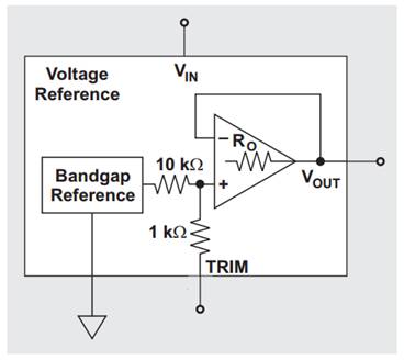 有兩個(gè)主要噪聲源:帶隙基準(zhǔn)和輸出緩沖器/放大器。正如您所看到的,圖 3 中的 TRIM 端子連接到帶隙模塊的輸出。這使我們能夠?qū)⑼獠侩娙萜鬟B接到 TRIM 端子,并在帶隙電路的輸出端創(chuàng)建一個(gè)低通濾波器。