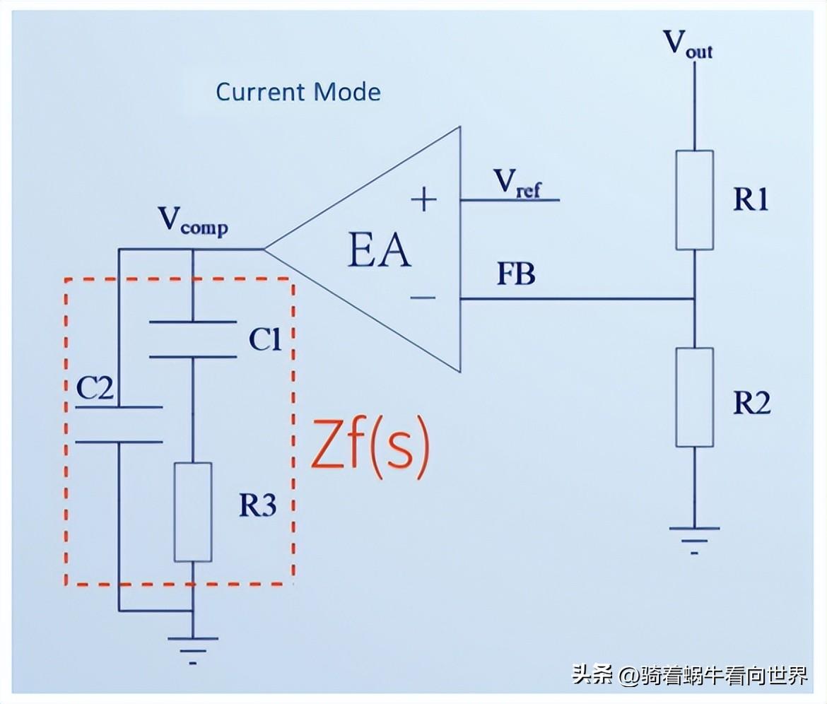在電流模式運(yùn)放中,運(yùn)放增益 (GEA(S)) 與 R1 / R2 值沒有直接關(guān)系,但與兩個電阻的比值有關(guān)。圖 6 所示為電流模式運(yùn)放。