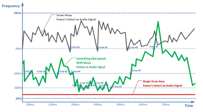 人耳可以聽到的頻率范圍約為 20 Hz 至 20,000 Hz。該范圍可以包括單音,例如變壓器嗡嗡聲或來自無線電系統(tǒng)的白噪聲。這并不是說這些聲音在音頻系統(tǒng)中是理想的。高強(qiáng)度的此類聲音會(huì)損害聽力。人類語音、音樂和自然聲音具有不斷變化的不同頻率。因此,音頻檢測(cè)器應(yīng)該記錄頻率變化并根據(jù)這些變化挑選有用的音頻信號(hào)。