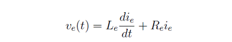 在直流電機(jī)中,磁通量由定子上的繞組產(chǎn)生。假設(shè)定子只有一個極性端子,其特征是與其繞組相關(guān)的電感 Le 和與導(dǎo)體泄漏相關(guān)的電阻器 Re 。該電路的方程模型為:
