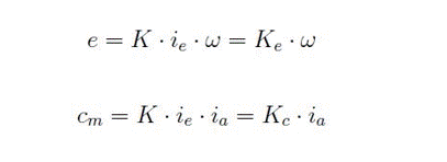 Ke 和 Kc 是電機(jī)的兩個常數(shù),稱為橢圓常數(shù)和扭矩常數(shù),ω 是角速度。