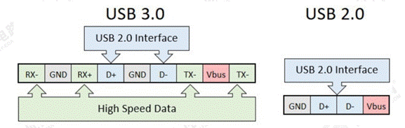 USB2.0及USB3.0接口管腳定義如圖1所示。