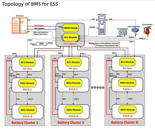圖2:儲(chǔ)能BMS的拓?fù)鋱D(圖源:huasu-tech)