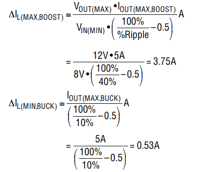 式中:IOUT(MAX,BOOST) 是升壓區(qū)中需要的最大輸出負(fù)載電流%Ripple 為30%至 50%。