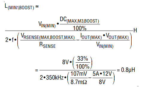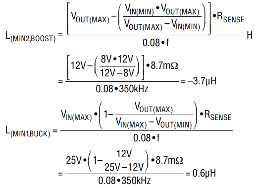 由于 RSENSE 已知,現(xiàn)在我們可以用下式來確定可在升壓區(qū)中提供足夠負(fù)載電流的最小電感值: