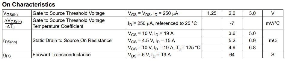 Onsemi FDMS7672 可滿足該規(guī)格,其在 VGS = 4.5V 的條件下具有約 6.9mΩ 的最大 RDS(ON) (在 125°C 時(shí)約為10mΩ)。檢查最大 VIN 和最小 VOUT 條件下降壓區(qū)中的功率耗散: