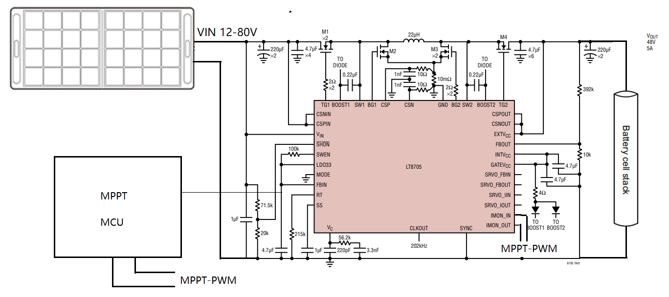今天我們要講到的是,ADI推出的LT8705降壓 - 升壓控制器 提供了一種極好的方法來解決工作電壓高達(dá)80V的系統(tǒng)中的可變性問題,因?yàn)樗梢越邮?.8至80V的輸入電壓,并在輸出端提供1.3V至80V的電壓,可以解決當(dāng)下流行的4塊光伏板串聯(lián)輸入充電(電壓高達(dá)72V)與12V車載充電的寬范圍輸入轉(zhuǎn)換的問題,這使得設(shè)計(jì)能夠與眾多太陽能電池板設(shè)備連接,通過運(yùn)行一個(gè)程序來實(shí)現(xiàn)最大功率點(diǎn)跟蹤(MPPT) 和最大限度地利用太陽能電池轉(zhuǎn)換的能量來進(jìn)一步改進(jìn)系統(tǒng)。