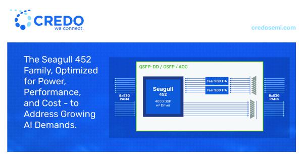 Credo推出Seagull 452系列高性能光DSP芯片——八通道/四通道/雙通道DSP