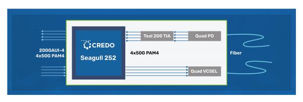 · Seagull 252可用于下一代4x50Gbps QSFP56光收發(fā)器/AOC,支持使用PAM4調(diào)制的200Gbps SR4/DR4/LR4應(yīng)用。