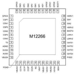 M12266是一款面向多串電芯大功率移動電源應(yīng)用的專用SOC,集成了同步升降壓電壓變換器、電池充放電管理模塊、顯示模塊、電量計算模塊,提供最大100W輸入/輸出功率,支持PD3.0、QC3.0、AFC、FCP、 SCP、BC1.2 DCP 等主流快充協(xié)議。芯片采用QFN-48封裝,配合極簡的外圍電路,即可組成100W多口移動電源。