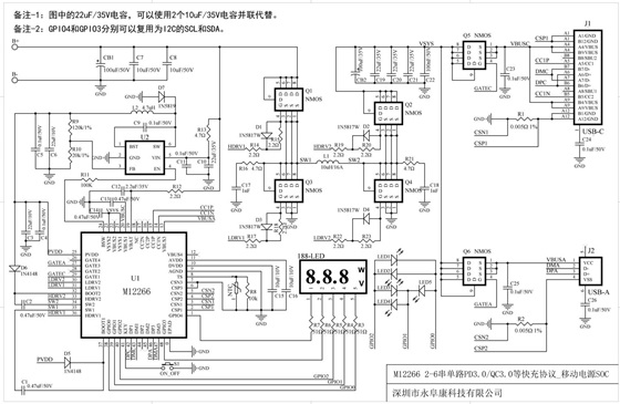 由于常見的便攜式電子設(shè)備都采用鋰電池供電,而不同設(shè)備的電采用的鋰電池串?dāng)?shù)不同。多節(jié)鋰電池充放電管理一直是一個棘手的問題。Type-C要統(tǒng)一充電接口,為不同鋰電池串?dāng)?shù)的電子設(shè)備進行充電,對充電芯片的要求是內(nèi)置快充協(xié)議的同時,還需要實現(xiàn)對不同設(shè)備鋰電池組的充放電管理。為此,深圳市永阜康科技有限公司現(xiàn)在大力推廣一顆內(nèi)置PD3.0/QC3.0等主流快充協(xié)議、3-6多節(jié)鋰電池移動電源雙向100W快充IC-M12266,配合極簡的外圍電路,即可實現(xiàn)常見便攜電子設(shè)備的Type-C快充需求。