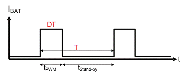 由電池供電的負(fù)載實際上并不是常開型負(fù)載,而是脈寬調(diào)制 (PWM) 負(fù)載,這意味著負(fù)載包含兩個時間段:tPWM 和 tStandby,如圖 1 所示。盡管 tStandby 占總負(fù)載周期(在圖 1 中顯示為 T)的 99.9%,但它對提升效率(尤其是輕負(fù)載效率)仍非常重要。