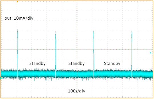 圖 4 展示了模擬前端的負(fù)載電流。如您所見,發(fā)送器在 99% 的時間處于待機模式。