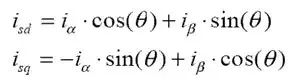 4、Park轉(zhuǎn)換:Park數(shù)學(xué)轉(zhuǎn)換將雙向靜態(tài)系統(tǒng)轉(zhuǎn)換成轉(zhuǎn)動(dòng)系統(tǒng)矢量