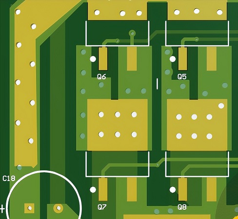 (3)大電流路徑盡量用鋪實(shí)心銅處理,一是電流載流量比較大,二是會(huì)有比較好的散熱效果,三是避免走線(xiàn)阻抗大,有較大電壓降落在走線(xiàn)上。