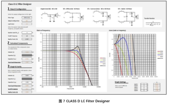 在根據(jù)供電電壓,喇叭負載,輸出功率等選定好合適的電感后,還需要注意LC濾波器 對音頻信號的頻響產(chǎn)生的影響。另外,喇叭阻抗也會影響濾波器的頻響特性。所以,選擇LC參數(shù)時也要同時考慮使用的喇叭阻抗。理想情況下,選擇合適的LC 組成critical damped, 通帶平坦,良好的相位響應(yīng)的濾波器。同時,也需要注意LC濾波器的截止頻率和品質(zhì)系數(shù)Q。