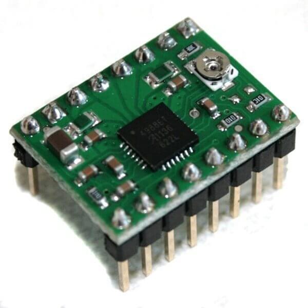 因為A4988內(nèi)置了譯碼器,我們可以可以通過控制器的2個引腳來控制步進(jìn)電機,一個控制旋轉(zhuǎn)方向,另一個控制步數(shù)。A4988提供了五種不同的微步控制:全步(full-step),半步(haft-step),四分一步(quarter-step),八分之一步(eight-step)和十六分之一步(sixteenth-step)。此外,它還配備了一個調(diào)節(jié)電流輸出、過熱保護(hù)和過流保護(hù)的電位計。A4988的邏輯電壓范圍是:3~5.5V,如果配備較好的散熱條件每相最大電流可達(dá)2A,在沒有配備散熱器的情況下,每相連續(xù)電流最好控制在1A范圍內(nèi)。