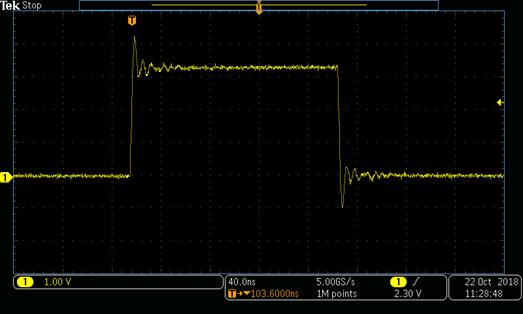 這 里,開關期間在 3.3V 線路上產(chǎn)生約 1V 的噪聲,該噪聲在終落入背景線路噪聲之前繼續(xù)在信號線路中明顯諧振。