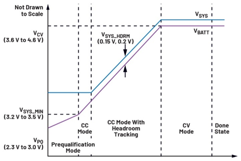 圖2.針對典型鋰離子電池充電周期的自動裕量跟蹤