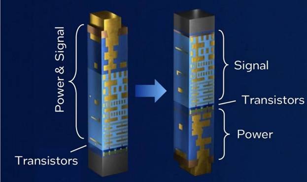 在Intel 3技術(shù)中,英特爾將進(jìn)一步增加對(duì)EUV的使用,而在開(kāi)啟埃米時(shí)代的Intel 20A和Intel 18A制程節(jié)點(diǎn)上,英特爾還將應(yīng)用兩項(xiàng)全新的技術(shù):PowerVia背面供電技術(shù)和RibbonFET全環(huán)繞柵極(GAA)晶體管。這兩項(xiàng)技術(shù)的研發(fā)工作均已完成。