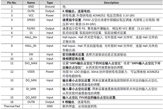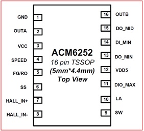 ACM6252是一款外置霍爾傳感器的單相無刷電機(jī)驅(qū)動(dòng)IC。內(nèi)部集成電機(jī)控制算法和電流檢測(cè),能夠基于霍爾信號(hào)控制單相無刷電機(jī)靜音/ 高效旋轉(zhuǎn)。內(nèi)部集成4 顆小于500mΩ 的 MOS保證1.2A電流輸出的情況下優(yōu)異的熱性能。TSSOP-16封裝,管腳兼容APX9230/M8121;外圍極其簡(jiǎn)單,不到10個(gè)阻容